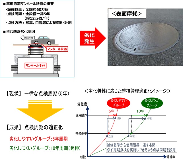 図1 車道設置マンホール鉄蓋の概要と劣化特性に応じた維持管理適正化イメージ