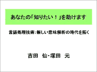メディアとコミュニケーション B-4 あなたの「知りたい!」を助けます ―言語処理技術:新しい意味解析の時代を拓く―
