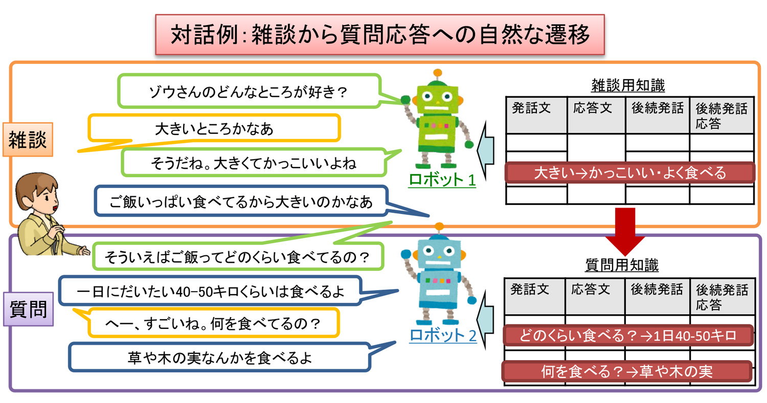 International Conference on Autonomous Agents and Multiagent Systems (AAMAS-2018), 2018 (to appear). [2] 杉山弘晃, 水上雅博, 成松宏美, “複数ロボット協調による一問一答型雑談対話からの脱却”, 人工知能学会全国大会, 2018 (to appear).
