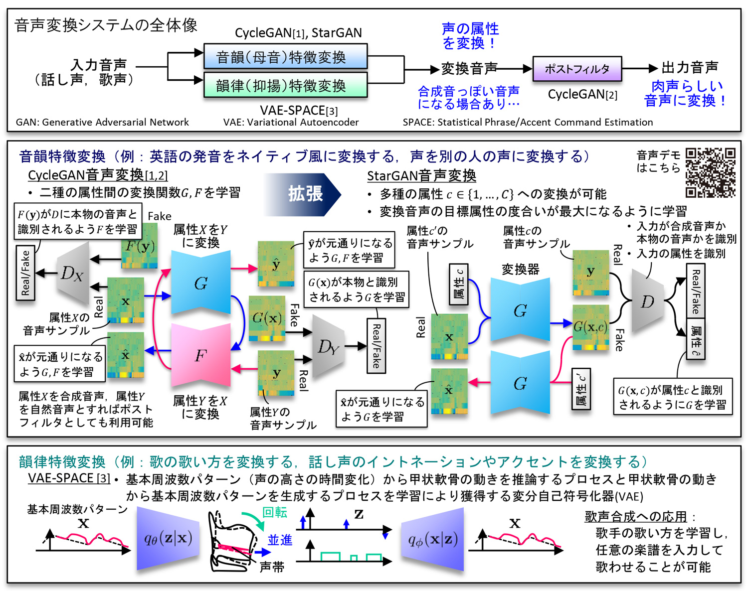 [3] K. Tanaka, H. Kameoka, Kazuho Morikawa, “VAE-SPACE: Deep generative model of voice fundamental frequency contours,” in Proc. 2018 IEEE International Conference on Acoustics, Speech and Signal Processing (ICASSP2018), pp. 5779-5783, Apr. 2018.