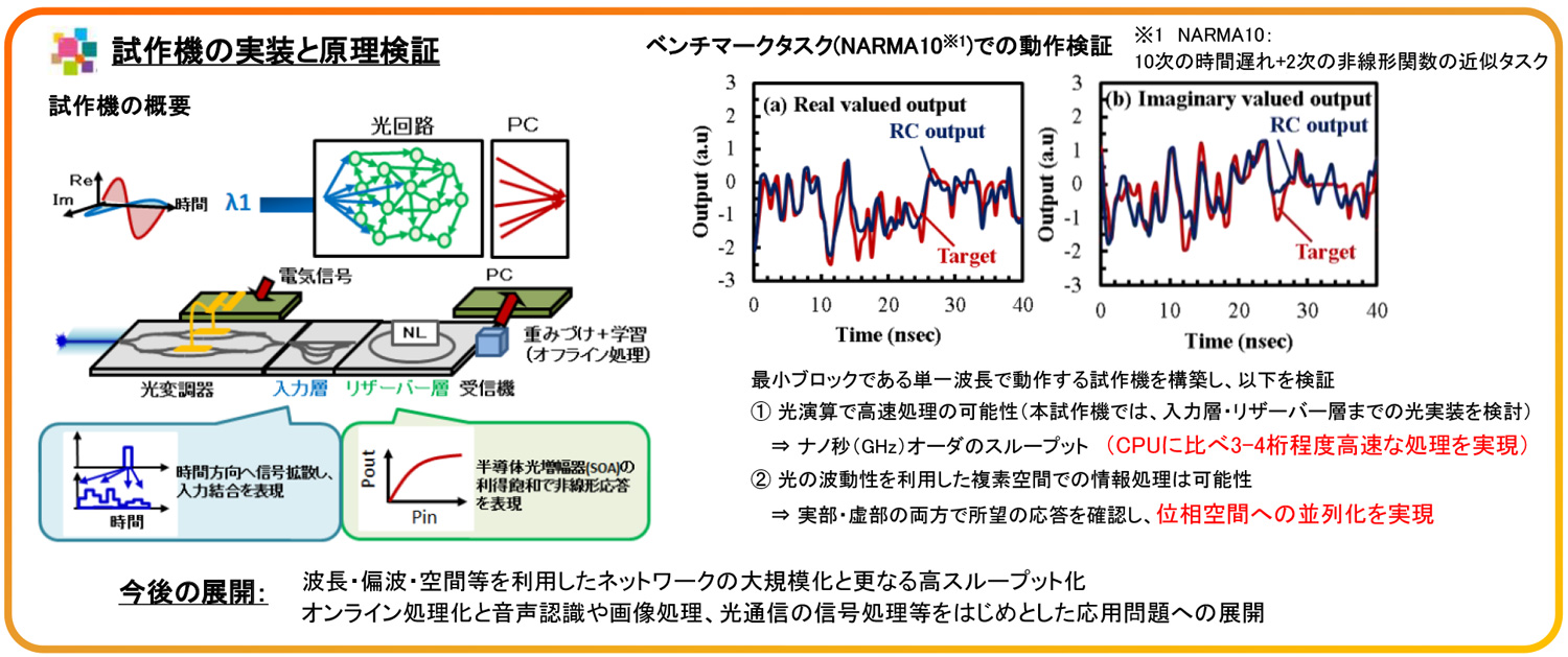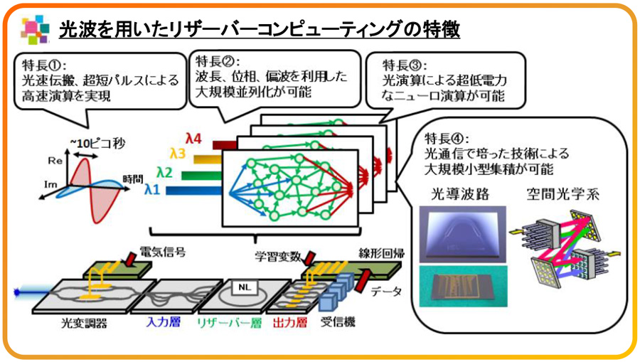 一つの回路で入力信号が1秒あたりギガビットを越える信号を処理することができます。さらに、光の位相、波長、偏波を用いることで演算量を数百倍にすることも期待できます。これによって、大規模なニューロ演算を高速に行うことが可能です。