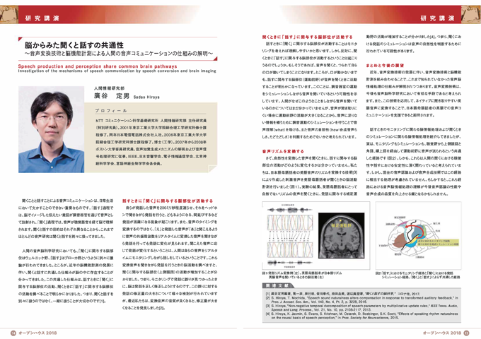 日常の音声コミュニケーションは「聞く」と「話す」で成り立っています。「聞く」と「話す」の目的はそれぞれ異なるため、音声コミュニケーションの中心的役割を果たす脳において、「聞く」と「話す」の処理は異なると考えられてきました。しかし、近年の脳機能計測の発展に伴い、脳において「聞く」と「話す」に共通な処理が存在することが明らかになってきました。本講演では、音声コミュニケーションの仕組みを解明するための脳機能計測研究を紹介し、人間の仕組みと音声認識や音声合成の信号処理技術との違いや今後の展望について述べます。