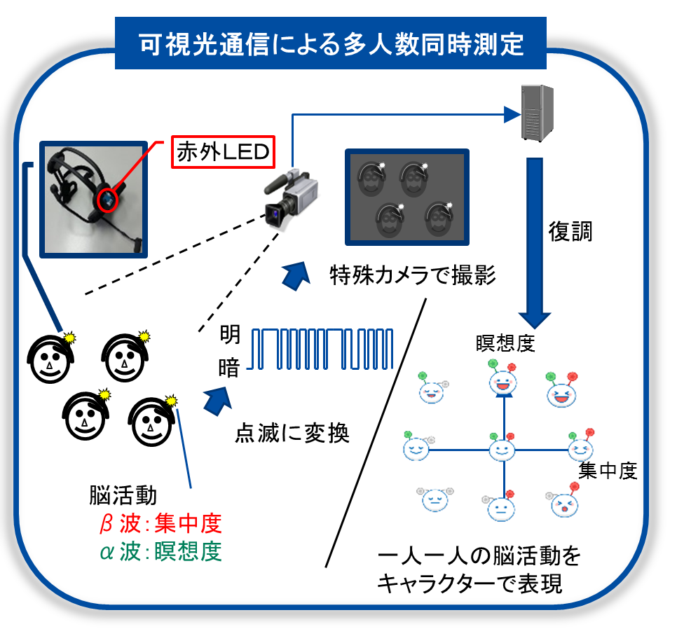 触覚体験によって配信コンテンツの視聴効果を向上させると共に、体験の場を共有することで生じる共感的コミュニケーション(一緒に見る効果)を、可視光通信を使った多人数同時測定技術によって客観的な生理指標として測定・評価していく研究です。