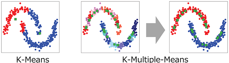Our approach accelerates K-Multiple-Means without sacrificing the quality of clustering results. K-Multiple-Means can be applied to a variety of tasks, including blind source separation, image segmentation, and network load balancing. Our approach is expected to serve as a breakthrough that enables these applications to be executed efficiently even on large-scale datasets.