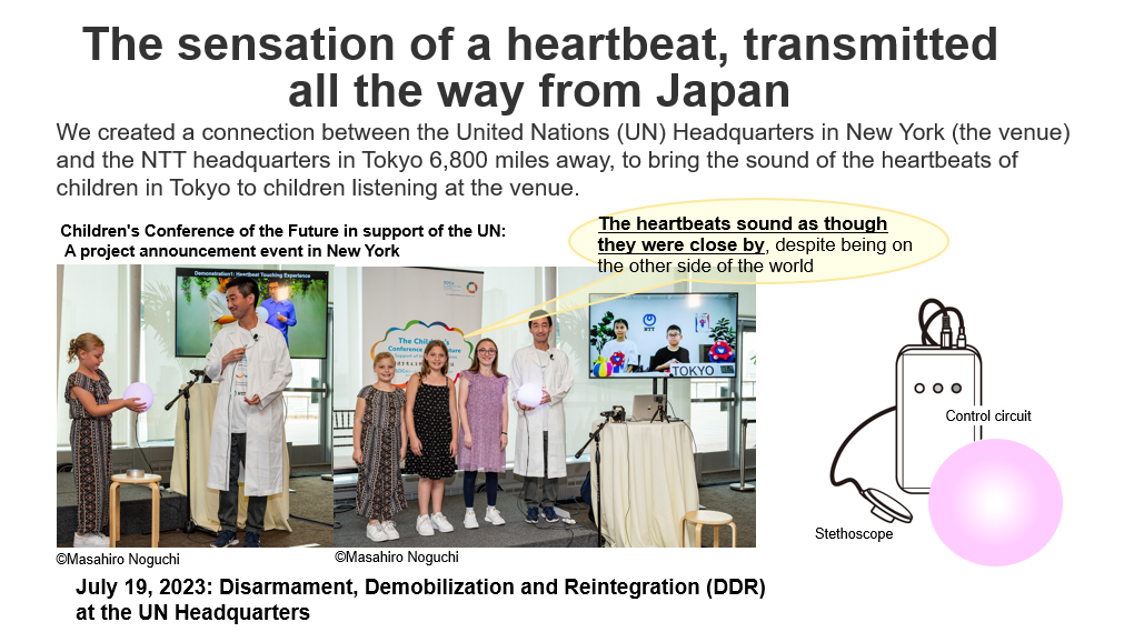At a Children's Conference of the Future held in July this year, we connected Tokyo and the United Nation's New York headquarters in this way.