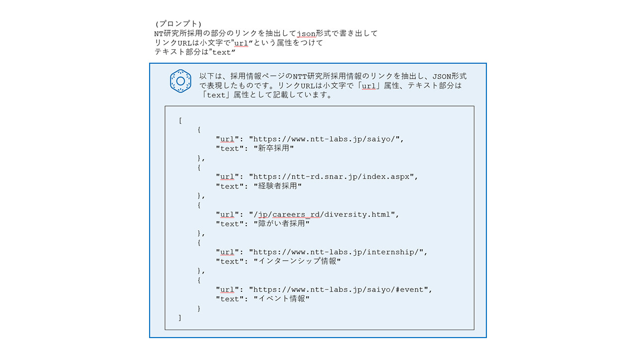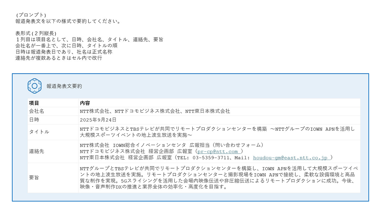 法人のお客様の利用形態の特徴の1つに出力形式の指定があります。例えば、要約においても自由に要約文を生成させるのではなく、報告様式があり、その型に準拠させたい。技術系の用途であれば文書から特定の情報を抽出し、json形式で出力して欲しいといった要求です。tsuzumi 2ではこうした要望にお応えするために指示遂行力を強化することで、使い勝手の良い言語モデルを目指しました。