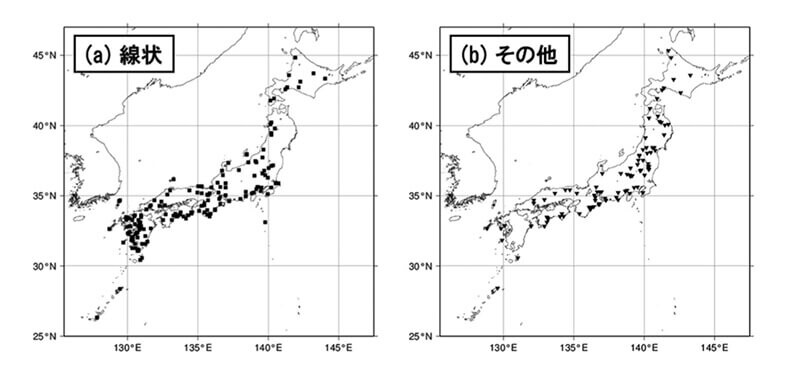 (画像出典:公益社団法人 日本気象学会『集中豪雨事例の客観的な抽出とその特性・特徴に関する統計解析』)